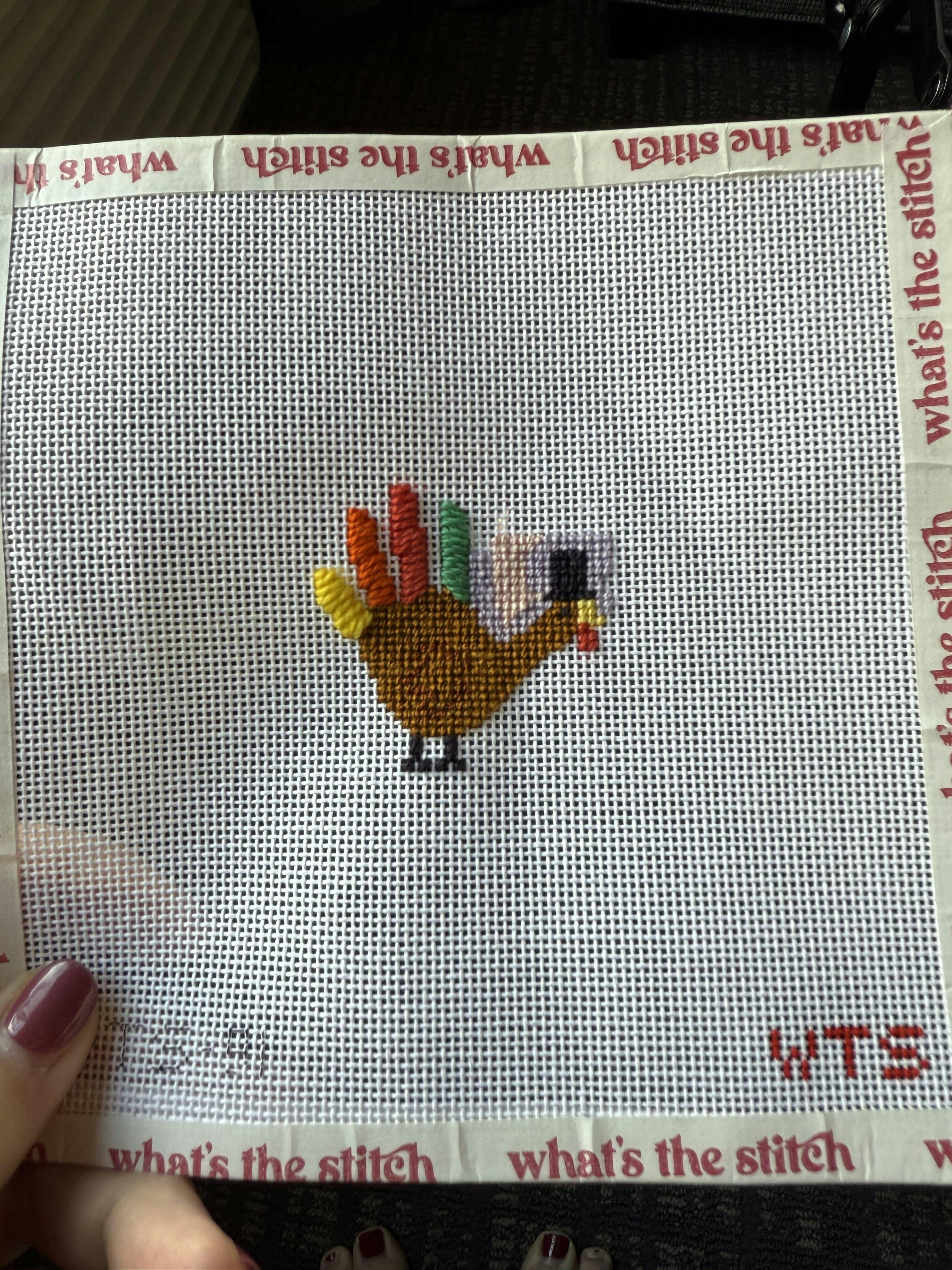 What a cute little turkey! The canvas is nicely painted. It was nice to see Emma post a completed turkey, great way to get some stitch ideas. I love that she gives color choices for two types of threads.