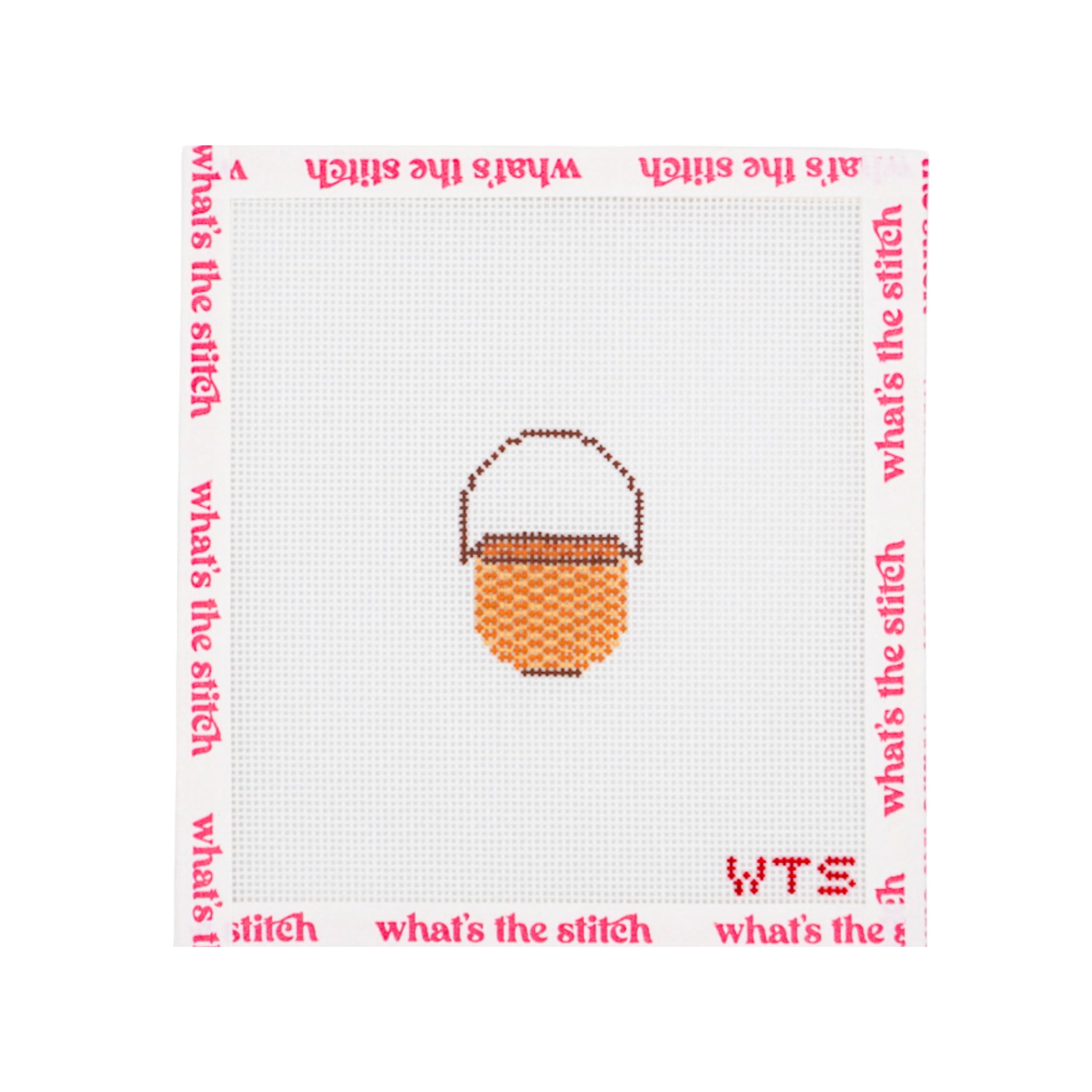 Our <b>Mini Nantucket Basket</b> canvas is classic, coastal, and endlessly charming. This petite design captures the island’s iconic basketweaving tradition in a fun, quick project that’s just the right size for a bag charm, ornament, or keepsake. Each canvas is hand-painted on 18 mesh for crisp detail and easy stitching.