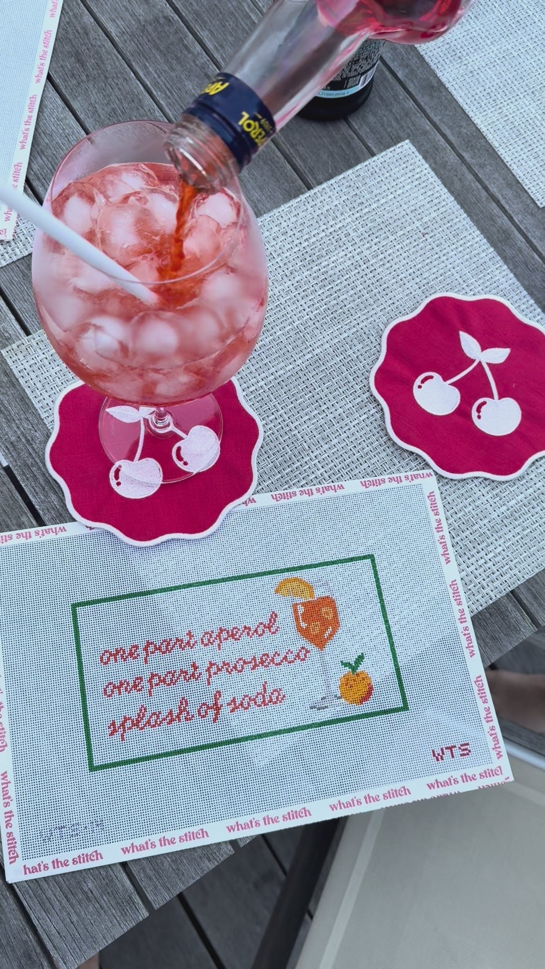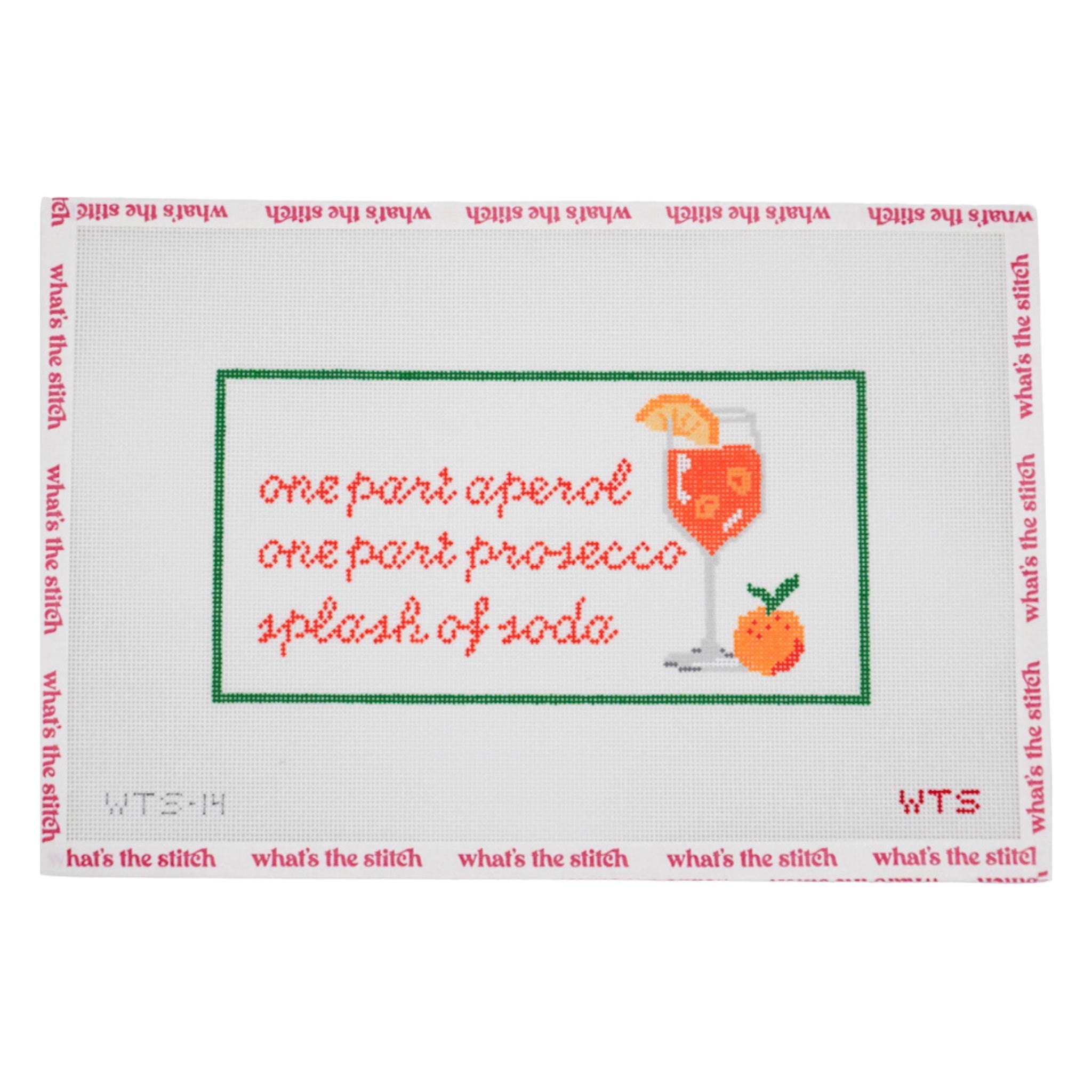Our Aperol Spritz Recipe needlepoint canvas brings a taste of summer to your stitching. With a playful nod to the classic cocktail, this design is as refreshing to stitch as the drink is to sip. Hand-painted on 18 mesh canvas, the design size measures ~4.0" x 8.0", and the full canvas size is ~8.0" x 12.0", leaving for plenty of margin to stitch and finish comfortably.