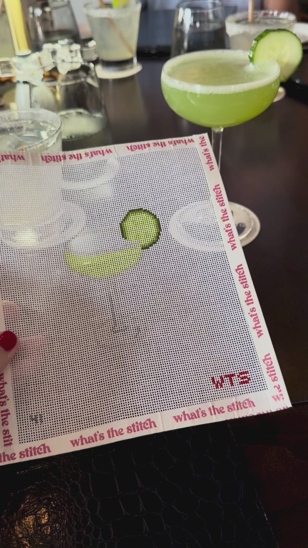 Our Cucumber Martini canvas is crisp, refreshing, and full of personality—just like the cocktail itself. A fun mid-size project, it’s perfect for adding a playful bar-cart vibe to your stitching. Each canvas is hand-painted on 18 mesh for clear, vibrant details, making every stitch easy to follow.