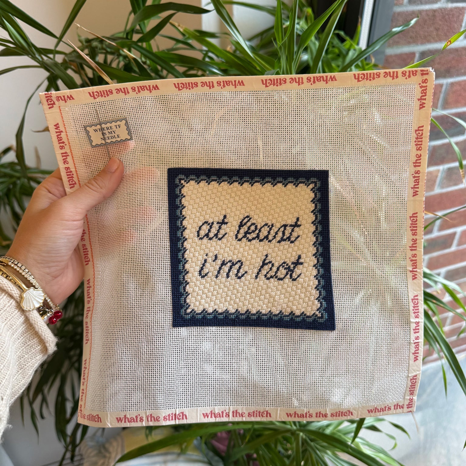 Our At Least I’m Hot canvas is cheeky, confident, and stitched with sass. A bold little square that says it all, this project is perfect for stitchers who love humor with a side of style. Each canvas is hand-painted on 18 mesh for crisp details and smooth stitching.