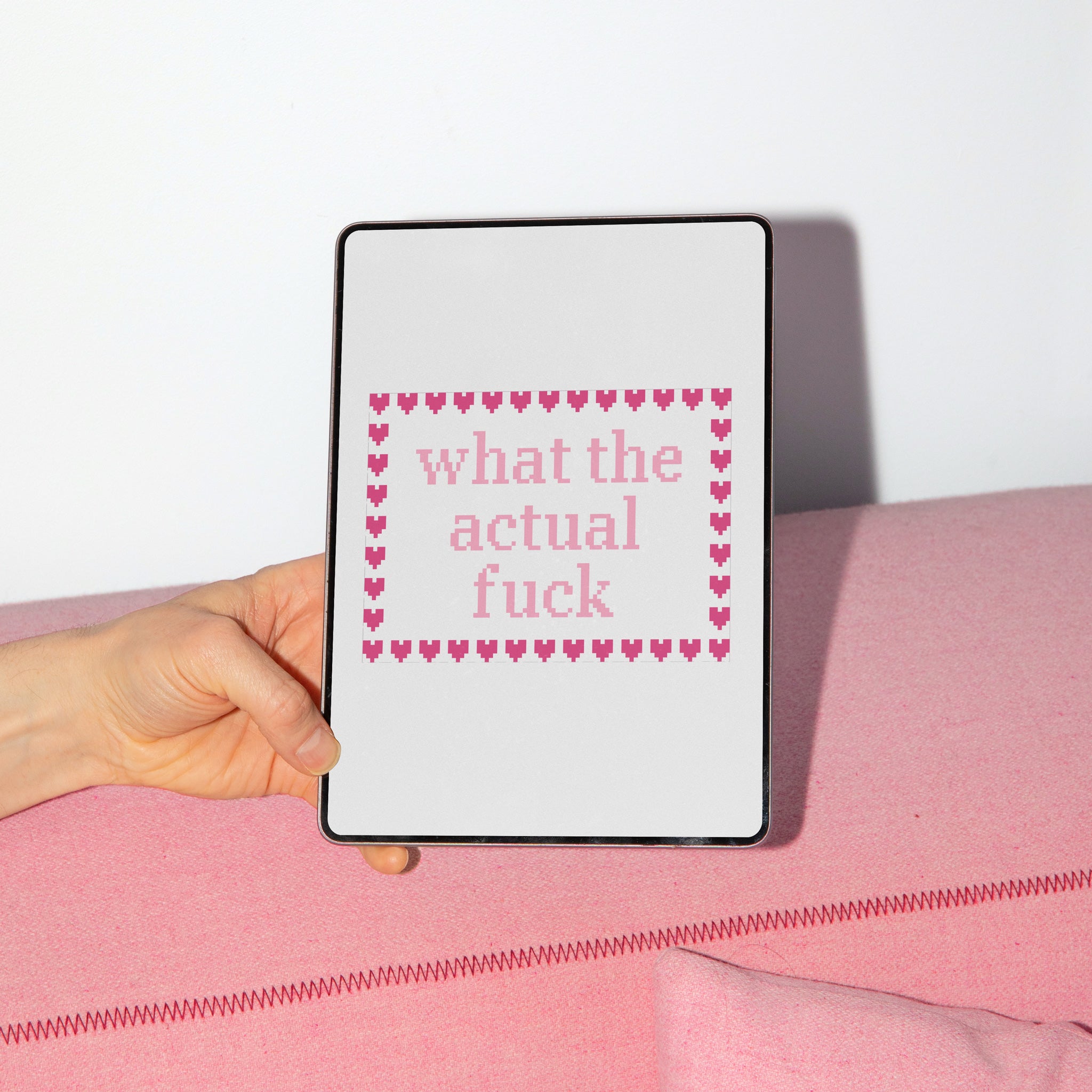 Our What the Actual Fuck digital needlepoint pattern is bold, unapologetic, and stitched with pure attitude. Delivered instantly as a PDF, the file includes a full-color chart you can print at home or view digitally to paint the design directly onto your own canvas before stitching.